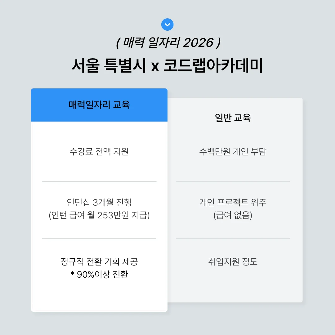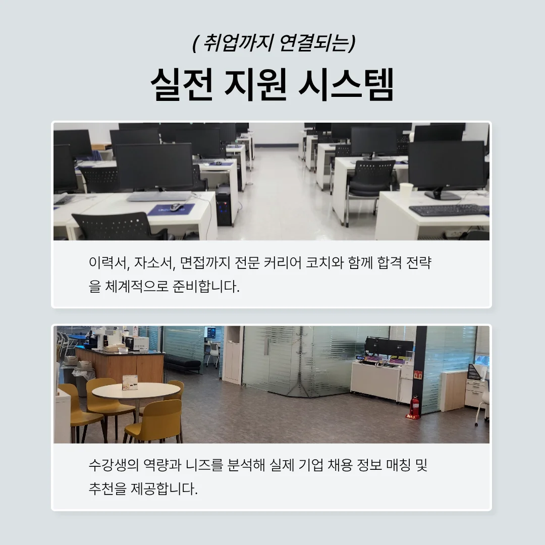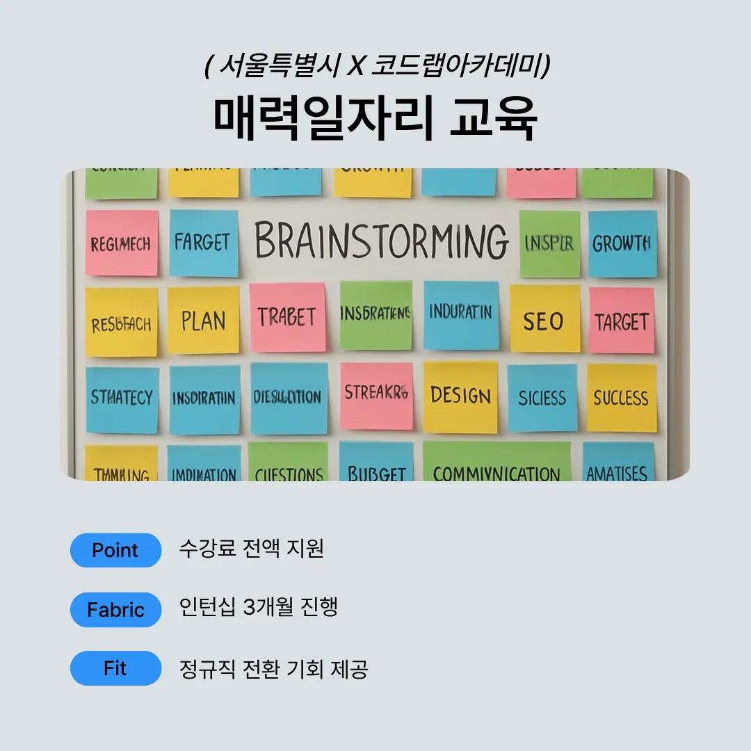 이 과정의 가장 큰 장점은 서울시 매력일자리 사업과 연계되어 있다는 점입니다. 단순히 교육비만 지원하는 것이 아니라, 실무 교육부터 취업 연계까지 전 과정을 함께 설계한 구조입니다.