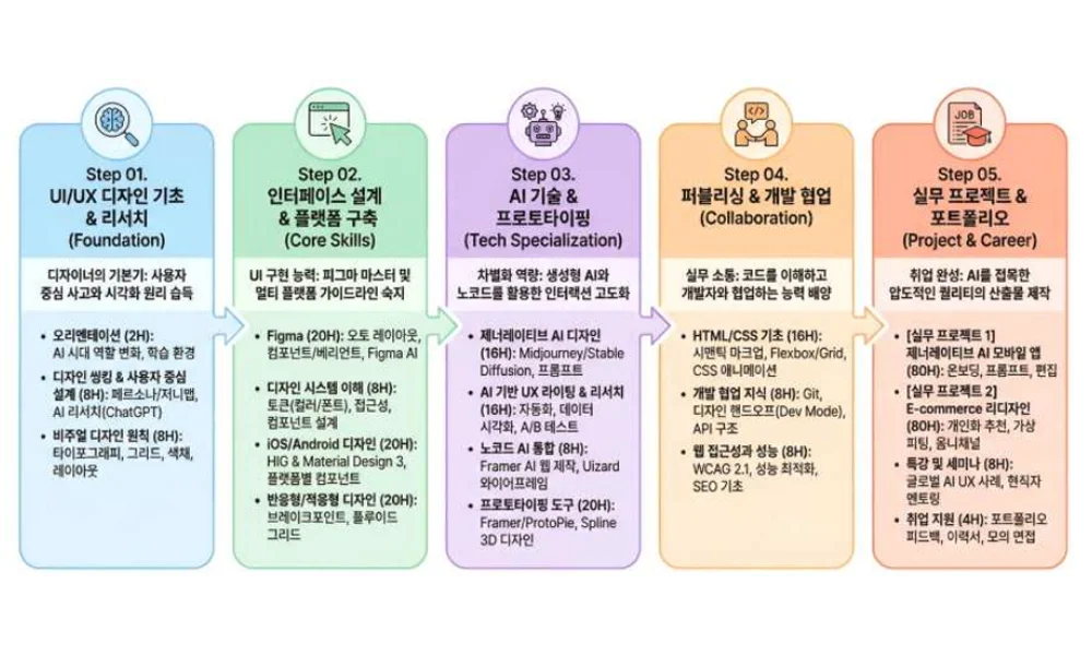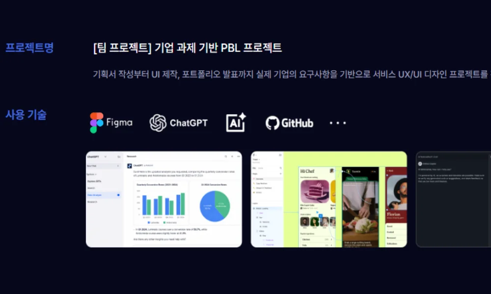 UX/UI 디자인 과정은 기업 과제 기반 PBL 프로젝트로 마무리됩니다.