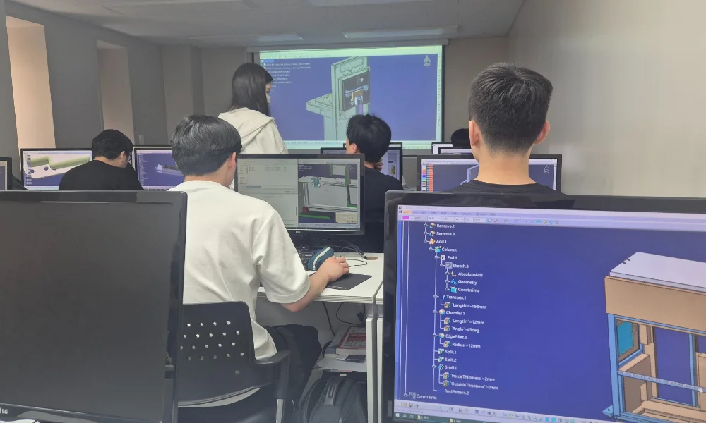 제조업 실무 경험은 있었지만 설계는 처음이었던 40대 수강생입니다. 이 분의 경우 CATIA는 물론 3D 설계 자체를 처음 접하는 상황이었습니다.