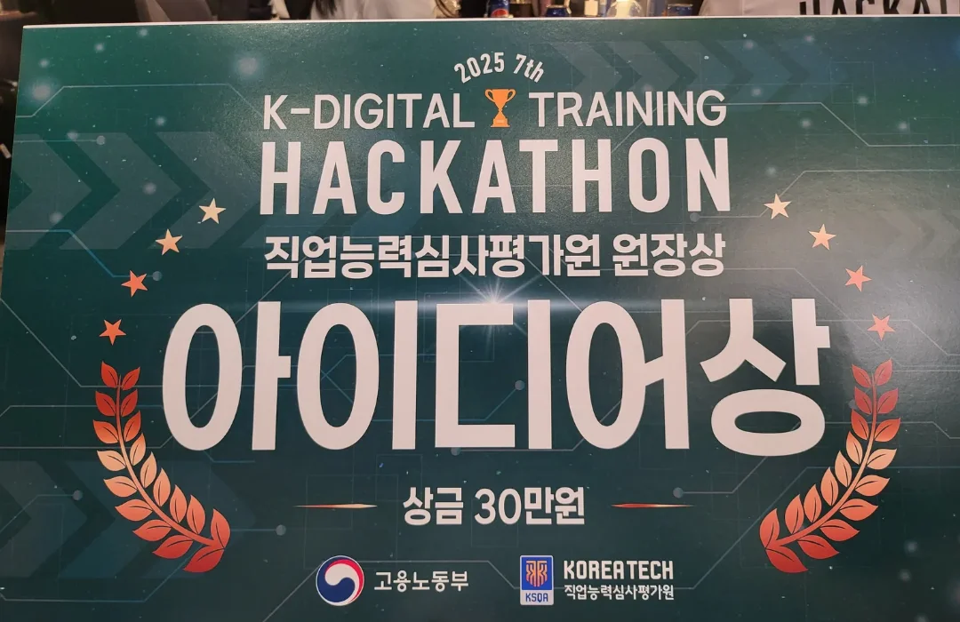 지난 9월 열린 제7회 K-디지털 트레이닝 해커톤에서 저희 로보틱스 5회차 교육생들이 모인 ‘해치’ 팀이 당당히 아이디어상을 수상했습니다. 이번 성과는 저희 기관의 교육이 실제 사회문제 해결 아이디어로 이어질 수 있음을 보여주는 뜻깊은 결과입니다.