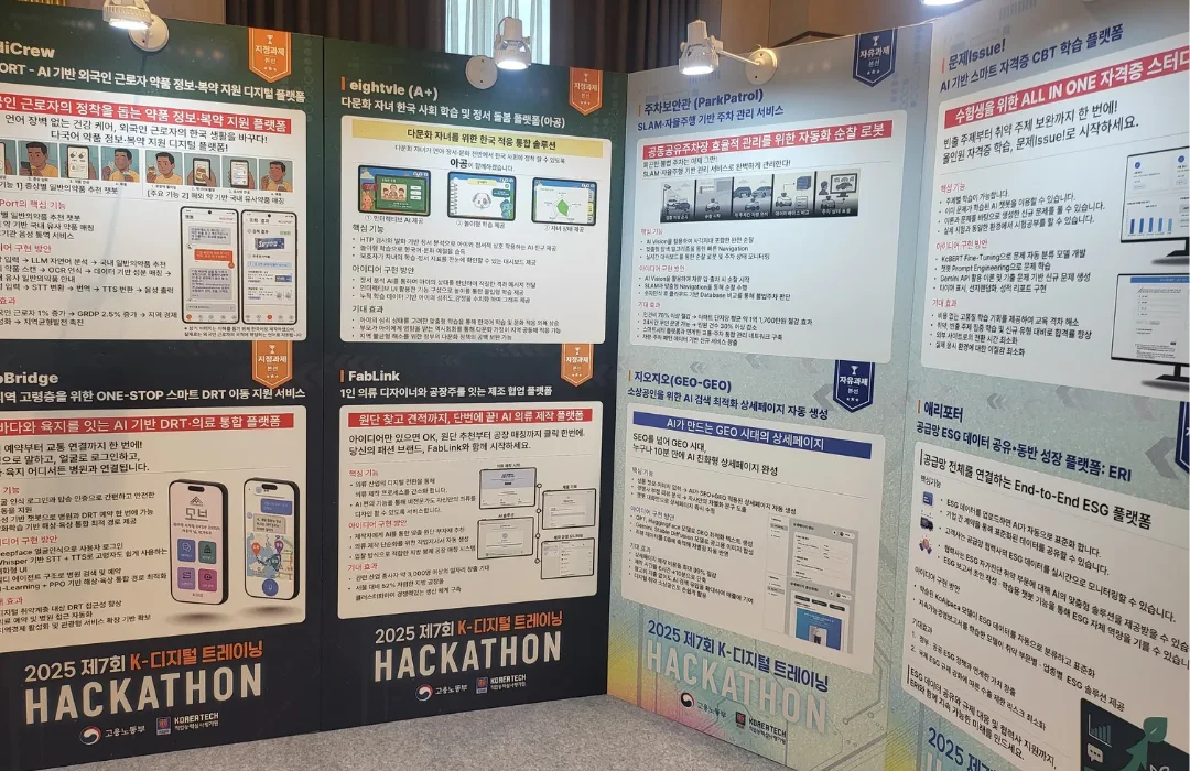 시상식 당일에는 김영훈 고용노동부 장관이 직접 참석해 국무총리상과 고용노동부 장관상을 상위 입상팀에게 수여하며 현장을 더욱 뜻깊게 만들었습니다. 대회가 끝난 후에는 해커톤 참가자들과 함께 모여 직업훈련과 청년 취업에 대한 솔직한 이야기를 나누는 간담회도 열렸습니다.
