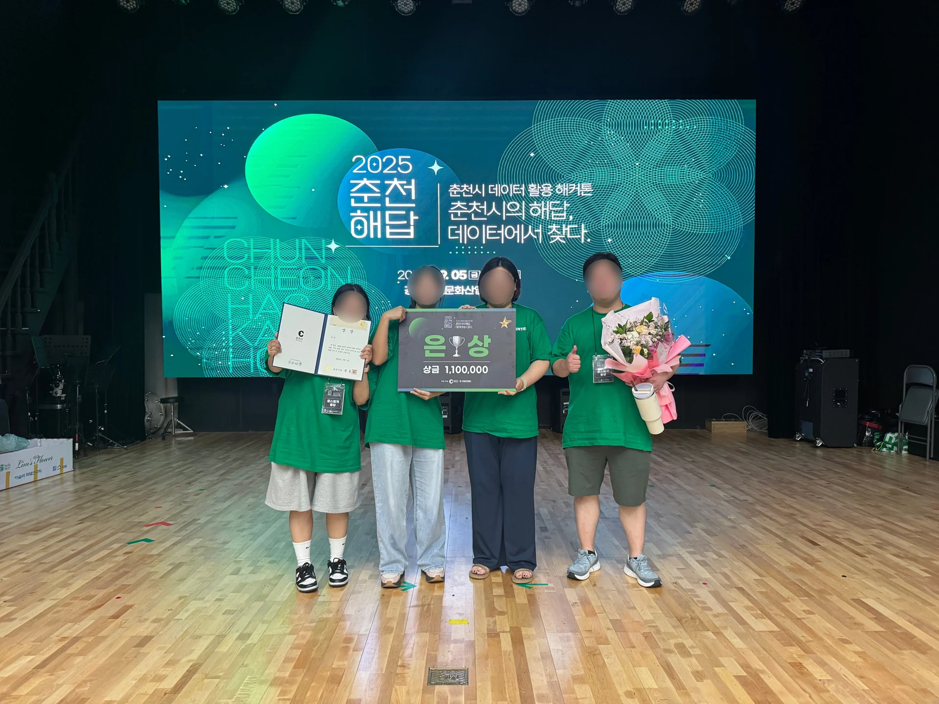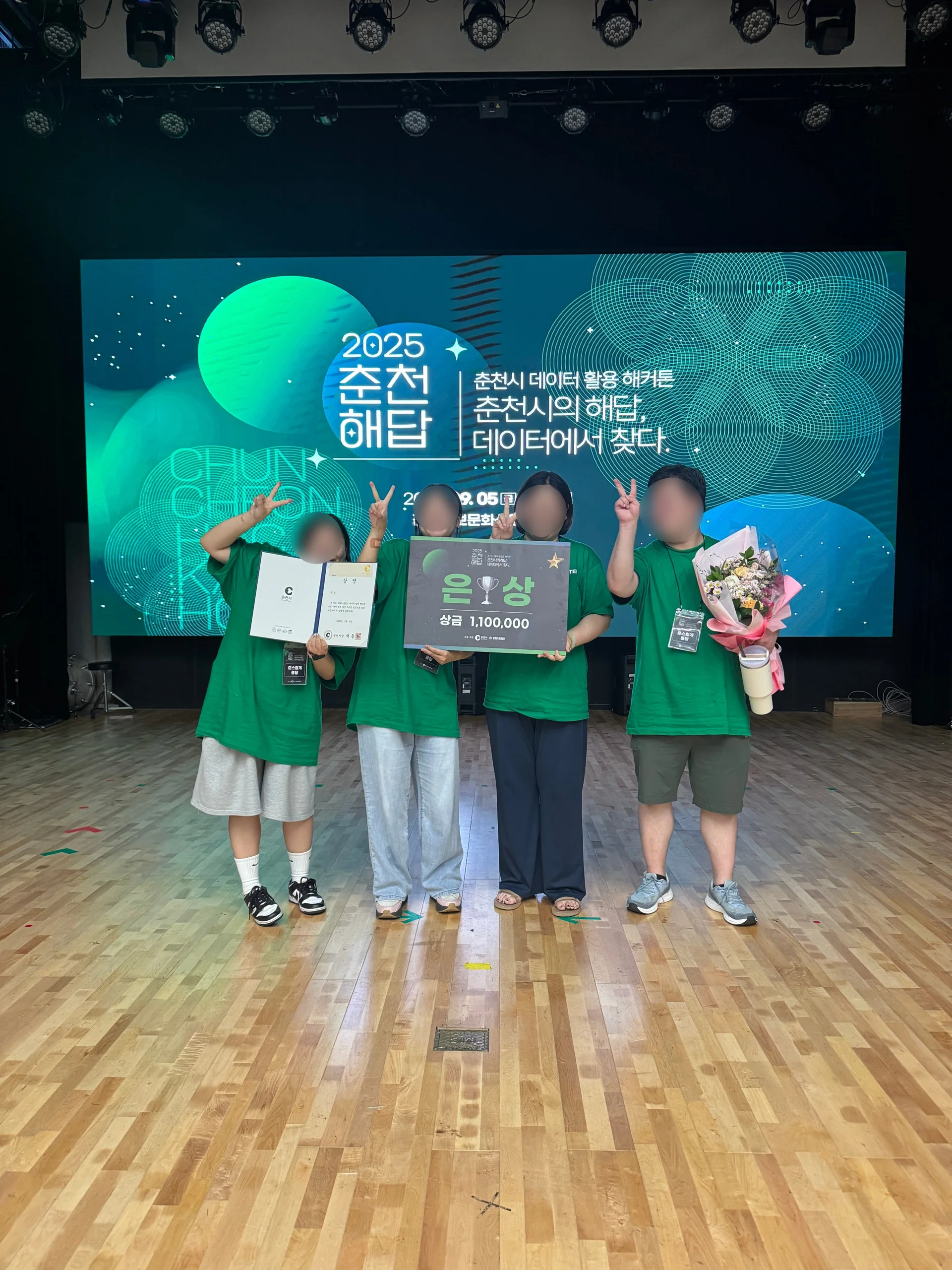 이번 춘천시 데이터 활용 경진대회 은상 수상은 그 노력의 연장선이자, 그동안의 성장을 확인할 수 있었던 순간이었습니다.